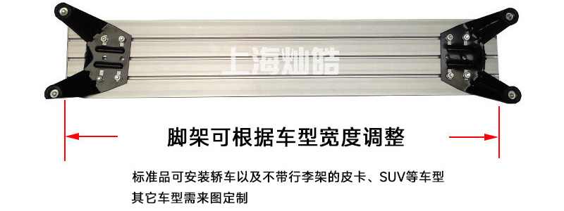 安装前先量一下安装车型车顶宽度,调整好免打孔安装支架的脚架位置,方法如下: