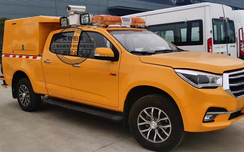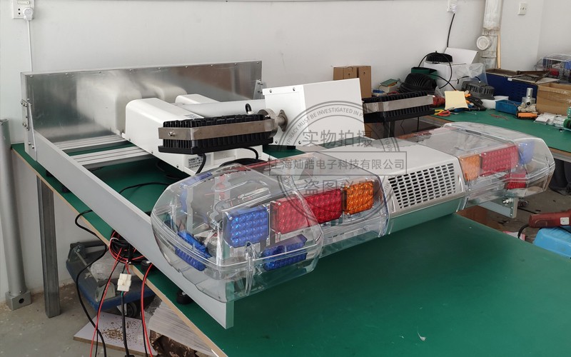 4、配设备架安装,设备架上可装车载升降照明灯、警示灯、显示屏、监控设备等集成一体化。效果如下: