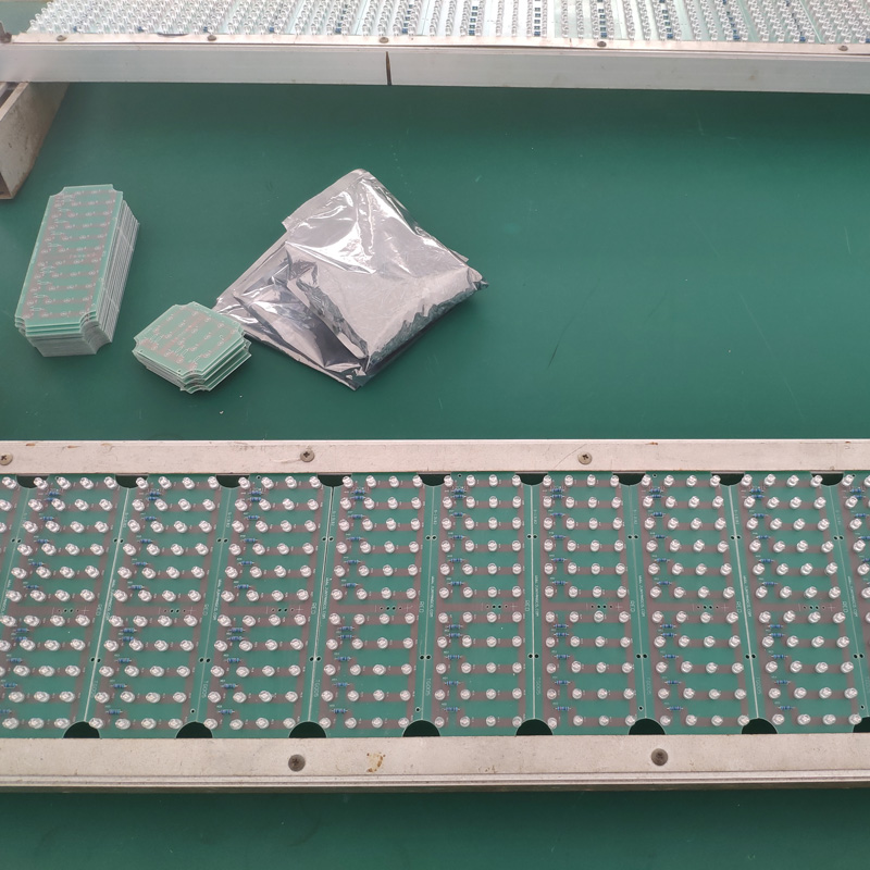 发光模块采用高亮度直插LED灯珠工艺生产,纯手工插件,非贴片模块。