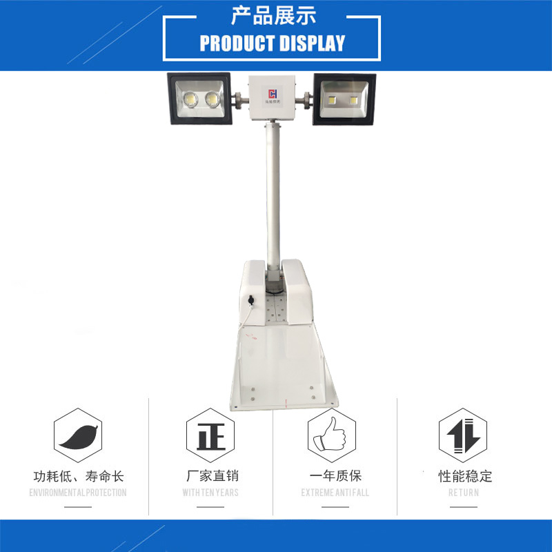 灿皓牌1.2米车载升降照明灯是一种新型的夜间车载移动升降照明设备,它参照国外同类产品结构,并结合我国的实际情况,进行了改良设计。设备具有手动远程控制、无线遥控控制,具备一键自动复位功能,质量可靠、性能稳定、操作方便、设计先进等特点。