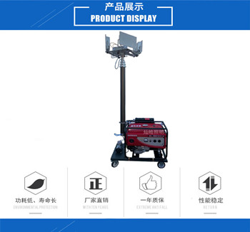 照射时间: 可直接使用发电机组供电,也可接通220V市电长时间照明;采用发电机组供电一次注满燃油连续工作时间可达13小时。